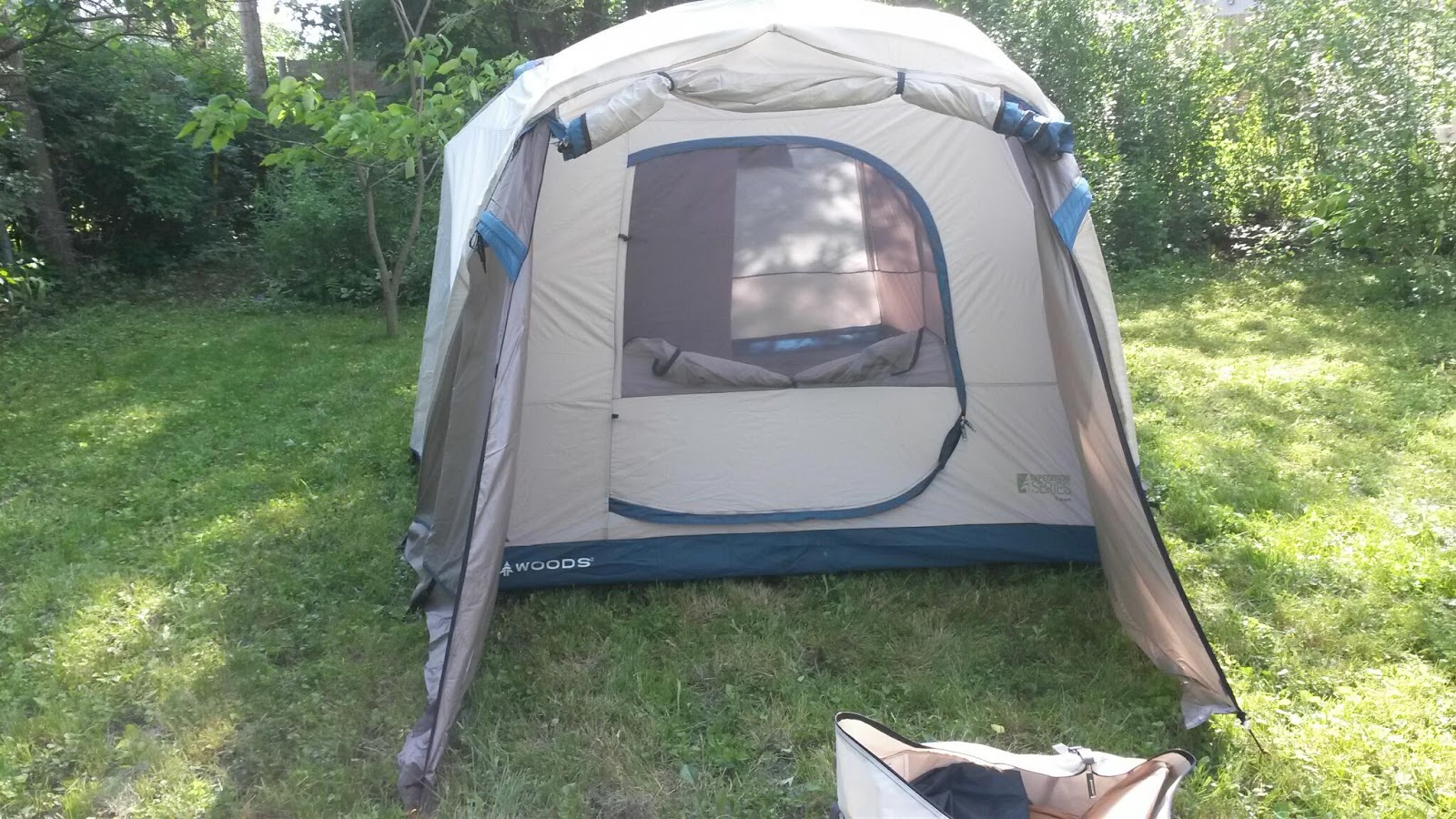 When  I saw the Woods Yukon 6 person tent reduced due to the fact it was discontinued, at my local Canadian Tire store, I decided to do a bit of research. I was looking for a tent big enough to use our Queen size 2 foot high inflatable mattress comfortably preferably in a tent that supports windy areas.  As well I like a tent with a full fly. A half fly just don't fly with me.